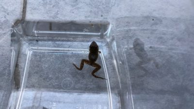 ヌマガエルを捕まえたのは川の水の上だったので、良い気もしましたが、ずっと水に浮かんでいるのも大丈夫なのでしょうか。