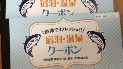 宿泊、飲食(テイクアウト含む)、日帰り入浴などに使え、サンライフ焼津やエキチカ温泉くろしおにも使えました。