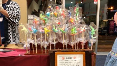 子供が実演販売と、出来上がっている飴細工に釘付けになりました。