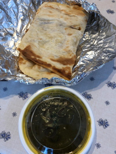 しかし、畳まれてアルミホイルに包まれていたためか、ガンガジで食べますランチの時よりも少しシナシナ弱った感じのナンになっていました、、、