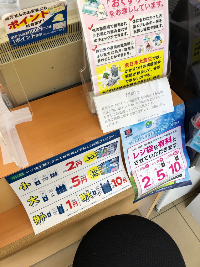 クリエイトのようなスーパー的な薬局は、そうかもしれませんが、処方箋専門の薬局もやはりレジ袋が有料になるのですかね?