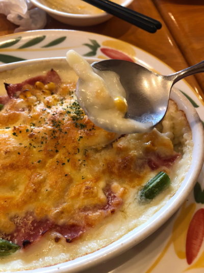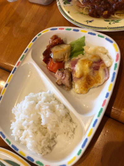 子供は、これに加え(白米とグラタン以外はほとんど食べませんでしたが)、前回同様にミートソースSサイズのスパゲティーを半分食べました^^