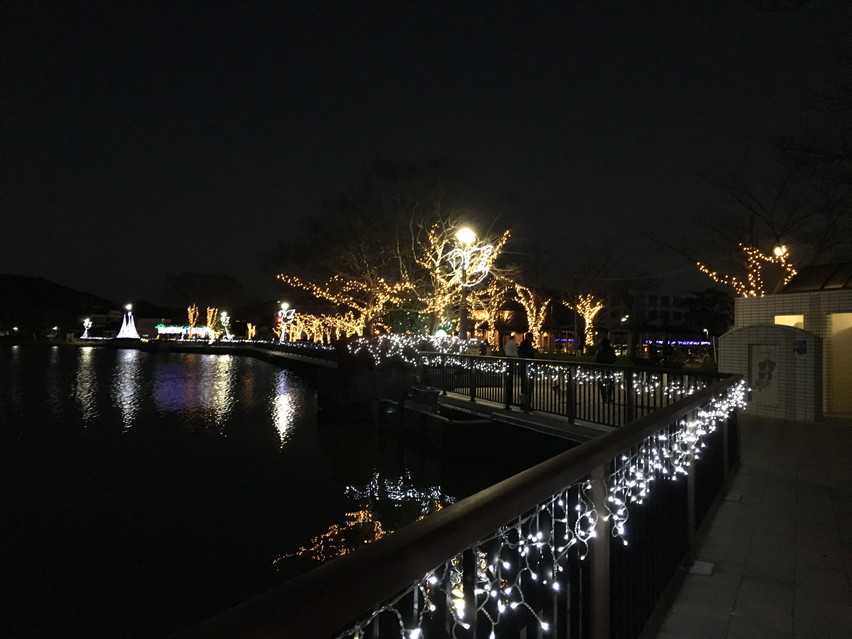 藤枝市にある蓮華寺池公園のイルミネーションを見に行ってきました。