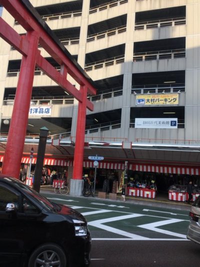 よくよく見ますと、大村用品店の上の大村パーキングの上から赤鳥居、届きそうですね、、、