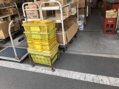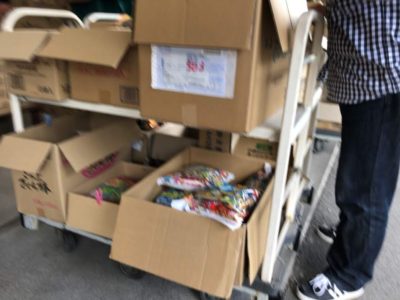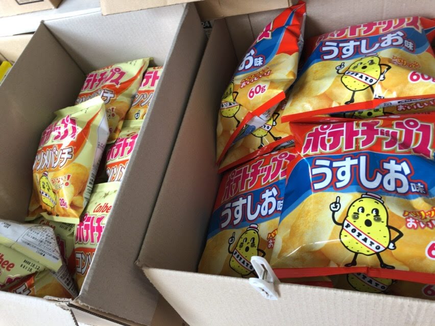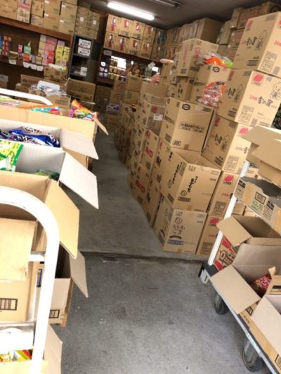 普通の駄菓子屋さんとは異なり、段ボールでお菓子が置かれていました。