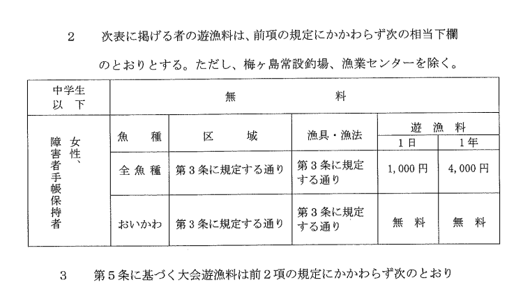 上の漁業権遊漁規制では、中学生以下の子供は無料となっていますし、