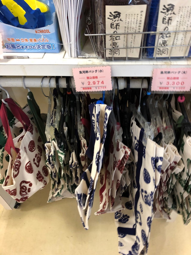 そんな魚河岸トートバックも焼津特産プラザで売られていました。他ではあまり見かけないですね、ちょっと焼津市民として欲しいと思いました(魚河岸シャツよりは)^^