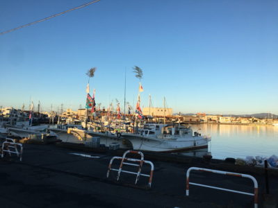 初日の出を見る穴場スポットが、小川港魚河岸食堂前の津波避難タワーでしたね。