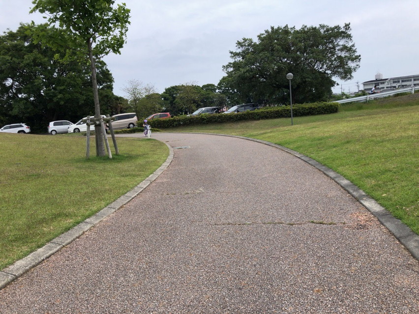 公園の芝生の周りを適度な傾斜がある道が通っていまして、歩くにも、子供が自転車で走るにしても、良い運動になりそうです^^