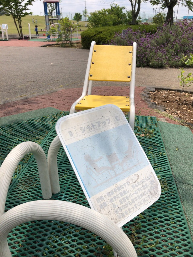 大覚寺公園は、子供向けの遊具だけでなく、大人用の健康器具もあります。