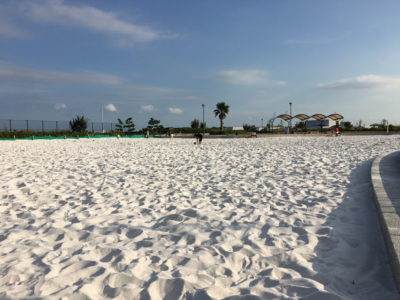 白い雪のような綺麗な砂場。静岡県焼津市で子供と遊ぶ