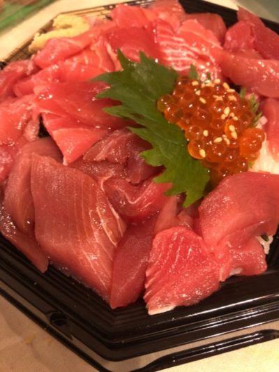 ただの赤身の鉄火丼ではなく、今回はミナミマグロの中トロ入りの鉄火丼を購入しました^^