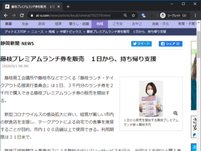 藤枝市では飲食店支援としてお得なプレミアムランチ券が販売されたそうです。
