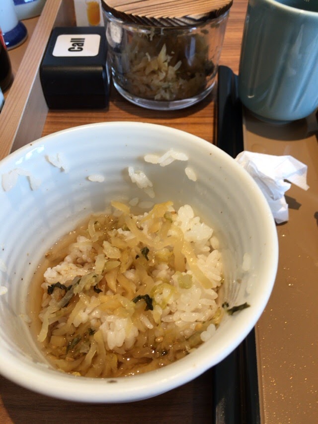で、お茶漬けにしている人がいましたので、マネしてやっていました笑