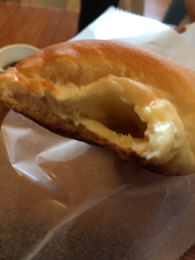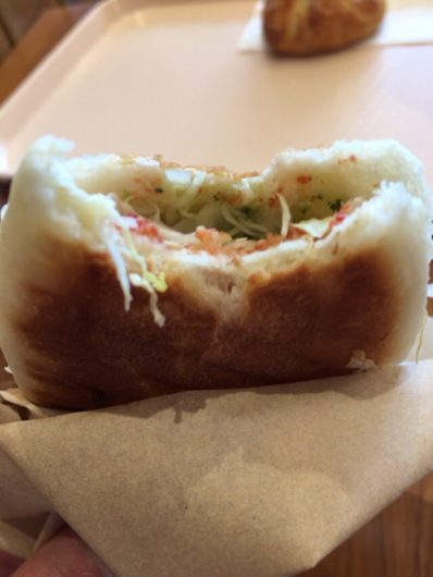 ということで、ホットコーヒーをもらい、エアコンの効いた店内テーブルでパンを頂きました。