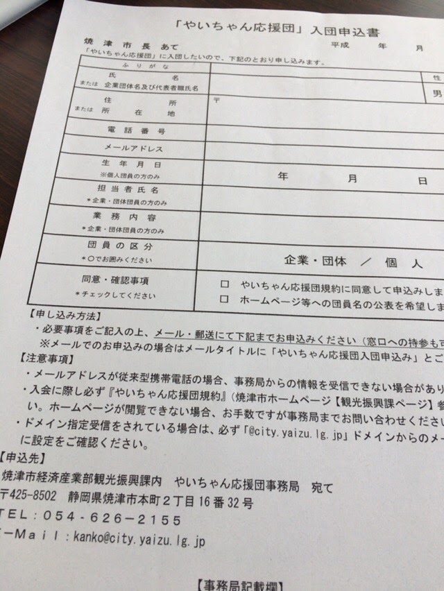 現在、やいちゃん応援団を募集中ということで、私も申し込んでおきました。