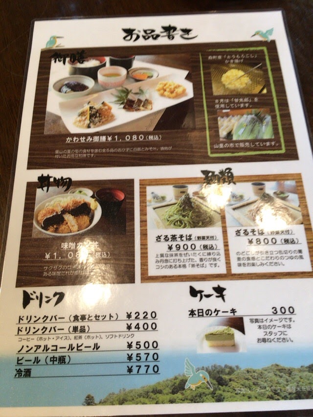 かわせみのメニューは以下です。