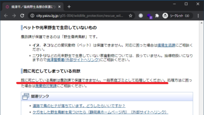 「小動物の死骸は自分で燃えるゴミにゴミの日に出してください」(一般家庭ゴミ)