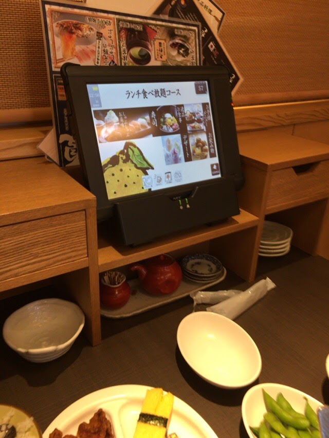 どのコースにするか店員さんに伝えたら、それから先はタッチパネルで食べ物を注文していきます。