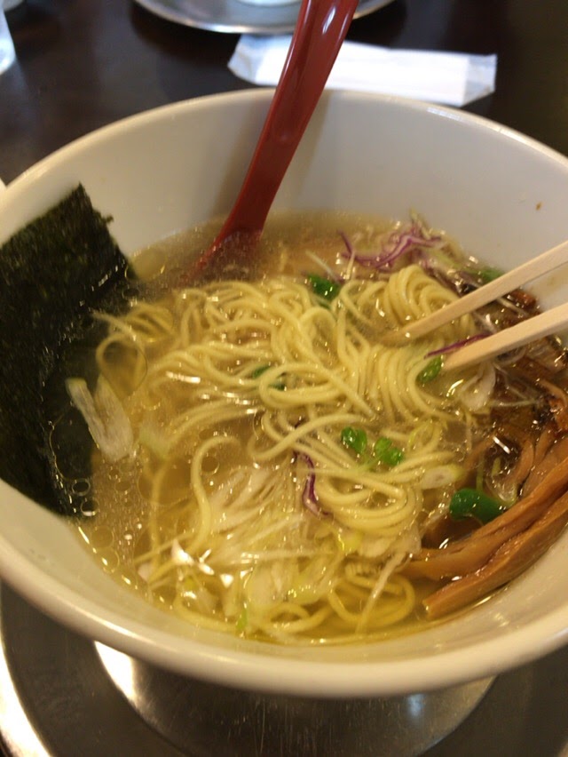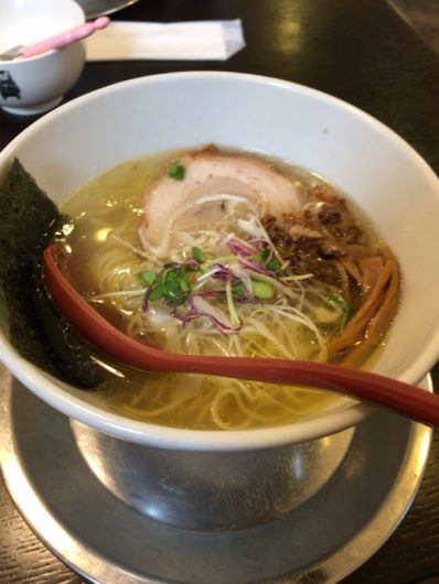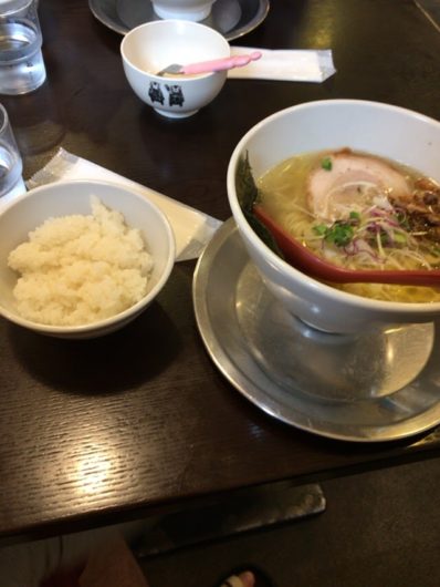 燕ラーメン塩。子供の取り皿もくれた、朝から美味しい!
